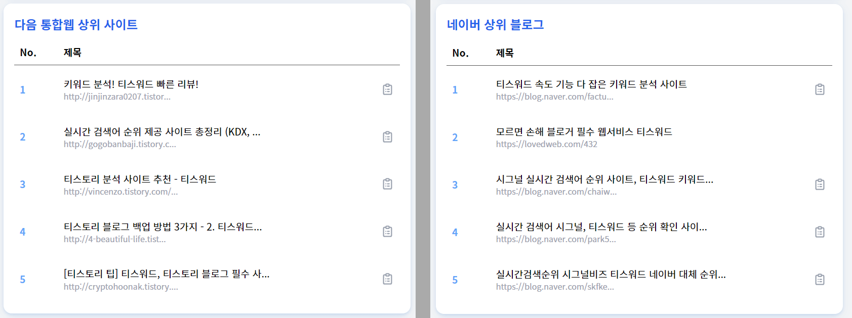 티스워드의 포스팅 순위 체크는 다음과 네이버 검색에서 내 글이 몇 위를 차지하는지에 대한 궁금증을 간단히 해결해 줍니다.
