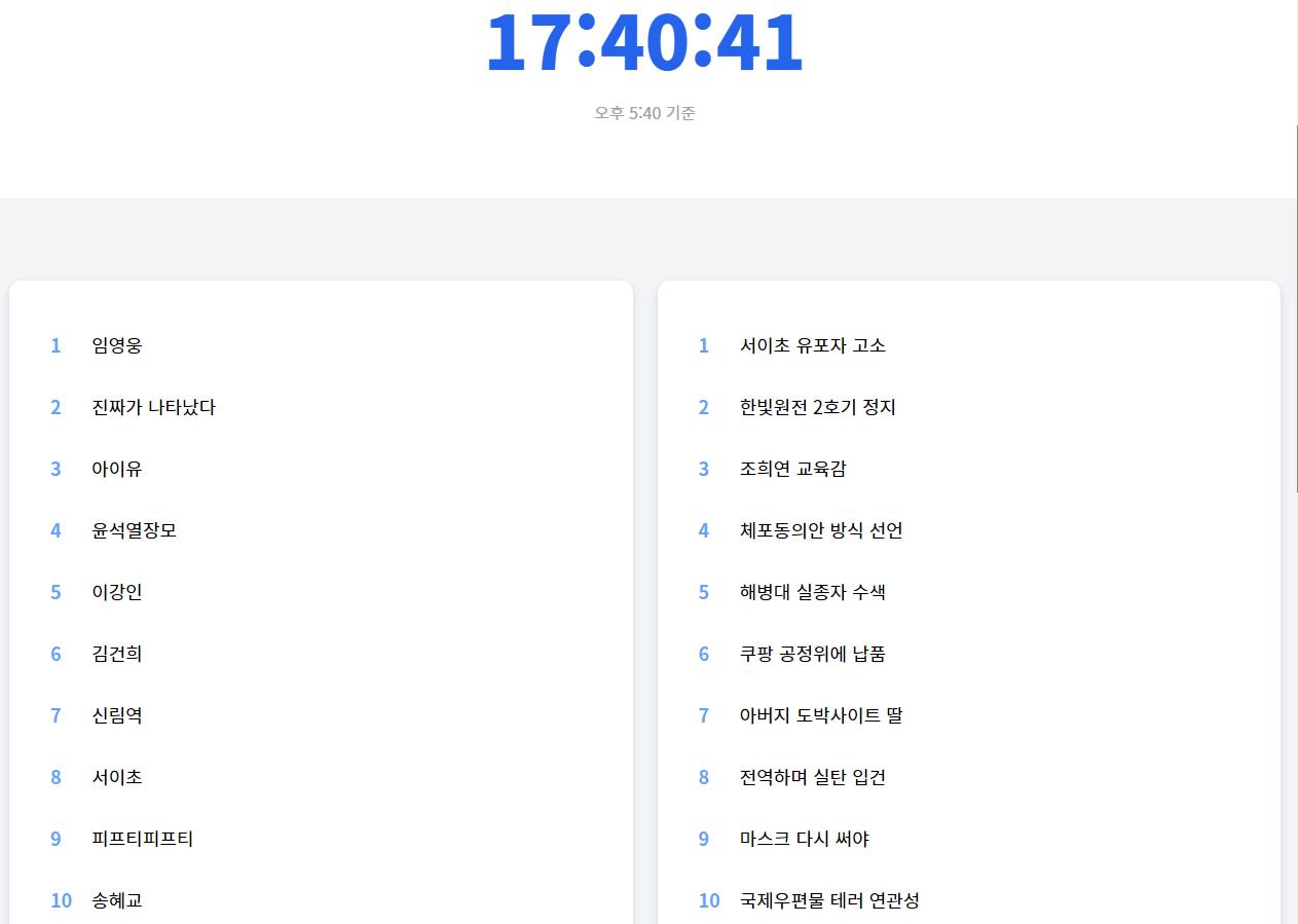 사람들이 현재 가장 많은 검색이 이루어지는 단어를 실시간으로 보여주고 있습니다.